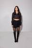 •Long structured sleeves.